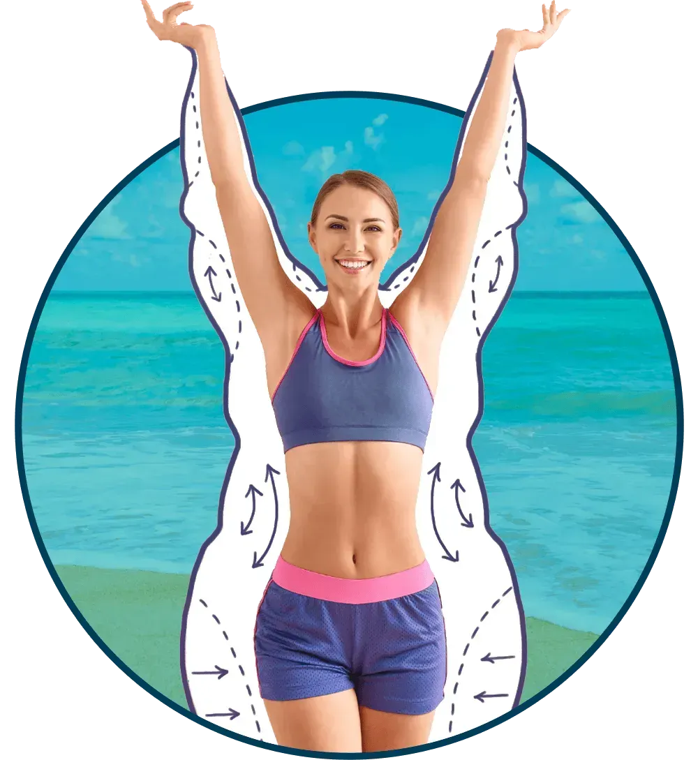 Before and after photos are taken from individuals who have completed a series of treatments. The number of treatments required varies depending on your current stage in your weight loss journey and your overall goals. Individual results may vary, as each person has a unique body type, starting point, and set of goals. For a clearer understanding of the potential results you may achieve, we recommend booking an appointment on the following page. During your appointment, we will discuss all necessary information to ensure your success with our body contouring lights!